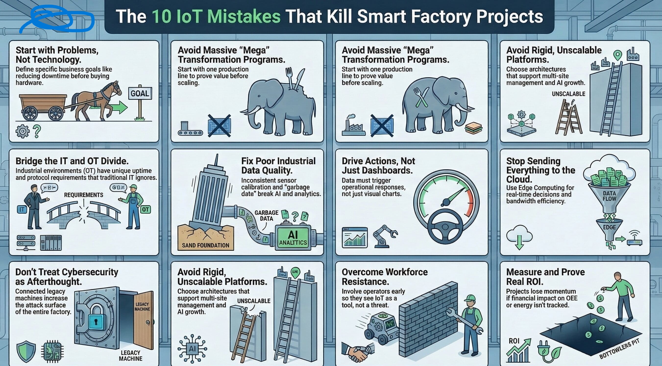 Viele Industrial-IoT-Initiativen scheitern nicht an fehlender Technologie, sondern an falscher Priorisierung, schwacher Datenqualität, unklarer ROI-Messung und fehlender Verzahnung von IT und OT. Dieser Beitrag zeigt...