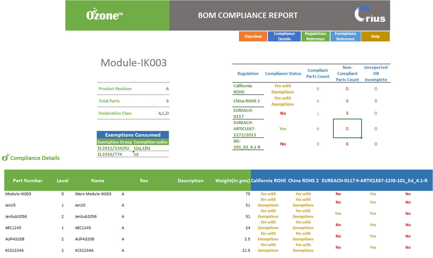 If you are an organization that doesn’t have a Product/BoM management system, feel free to use Ozone Lite that has flexible modules to provide a compliance assessment for your product structures