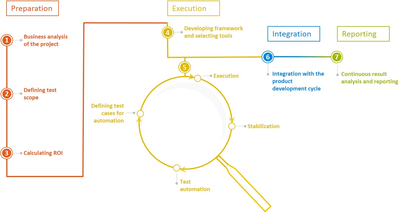 Test automation for varied systems on different technologies and platforms - desktop applications with/ without GUI, web applications, mobile applications, system adapters/ services.